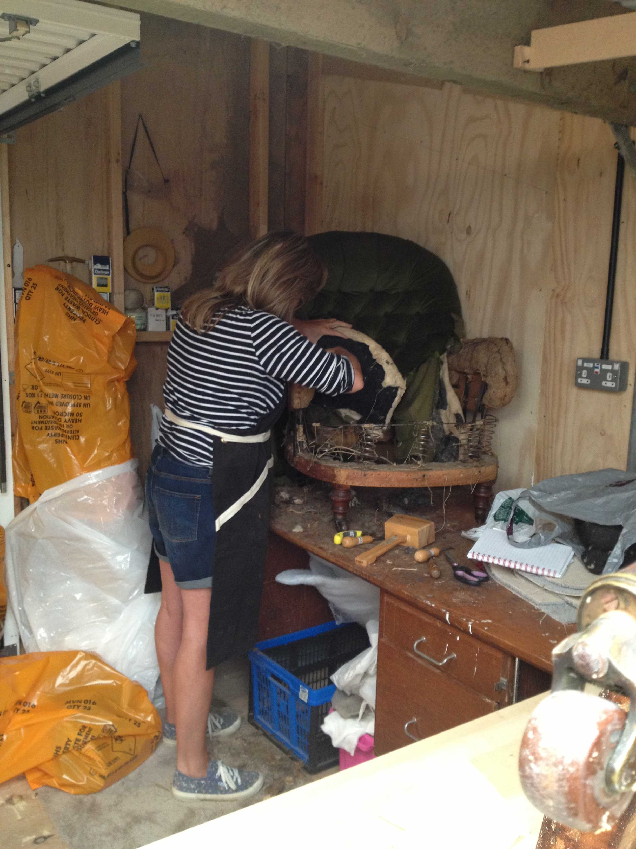 This is Cally, trying not to sneeze from the dust as she strips a lovely iron framed button back antique chair. Note the springs attached to the front of the frame. This type of chair is one of the most labour intensive items to work on due to the amount of hand stitching involved. This [More…]