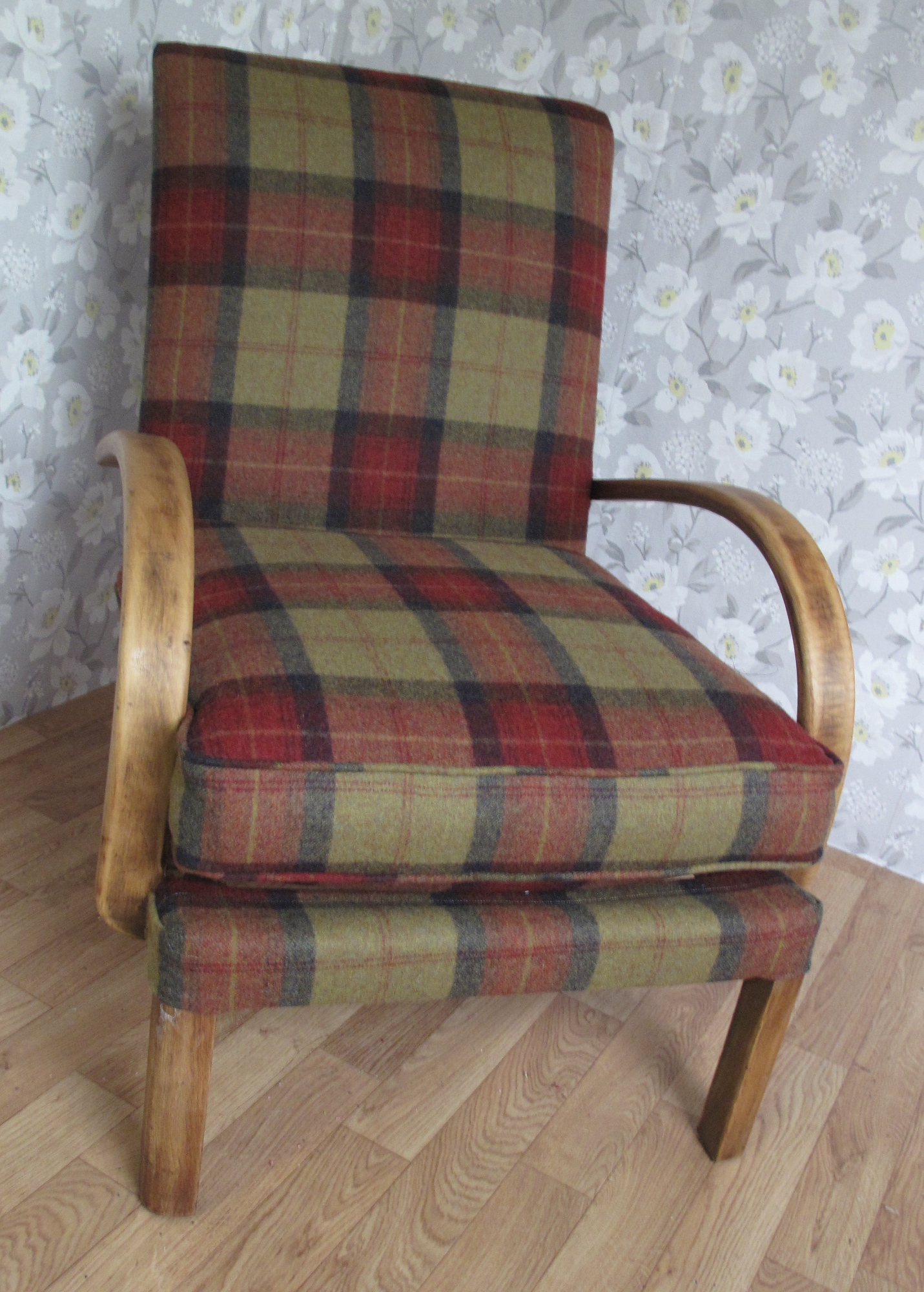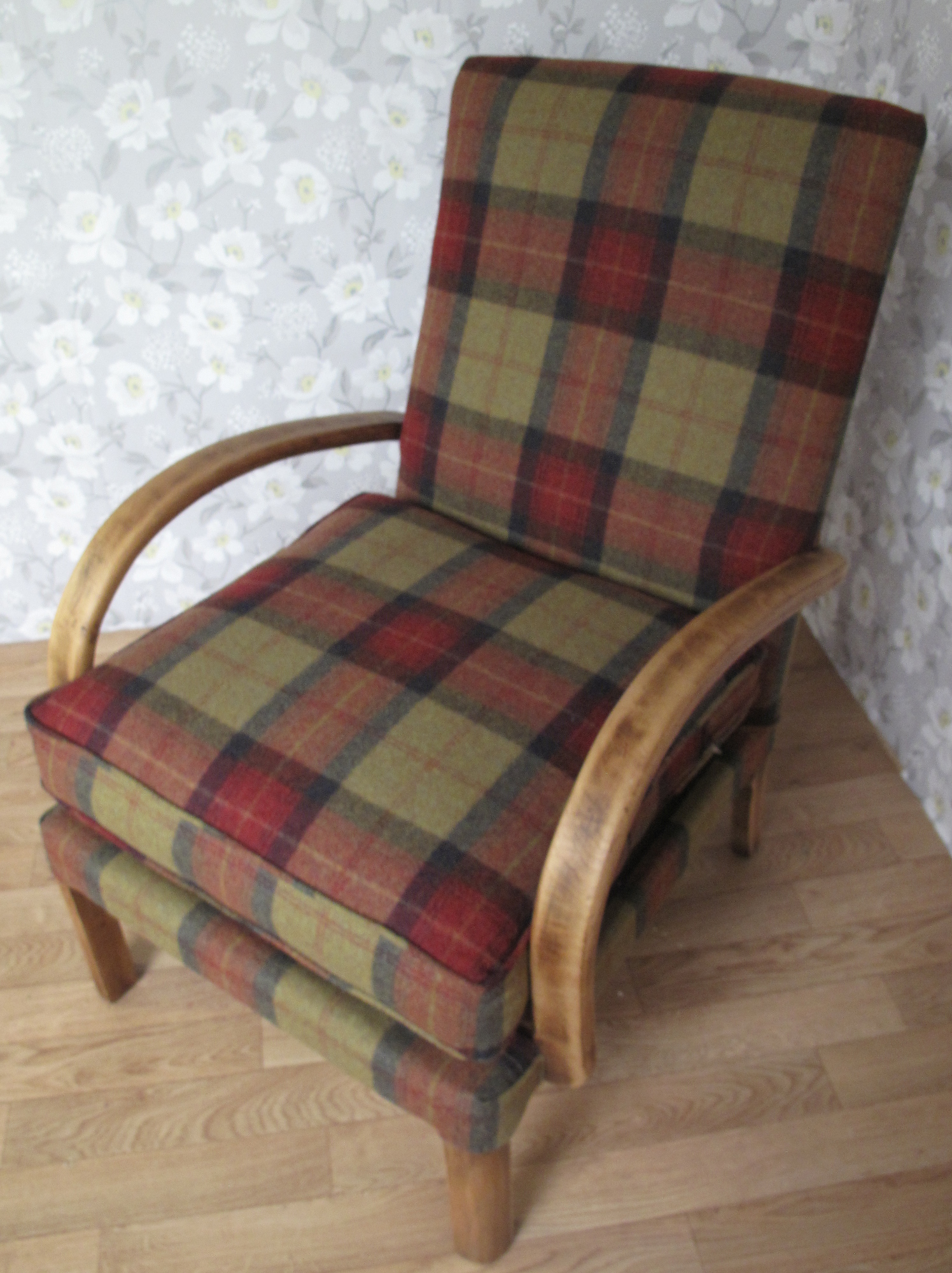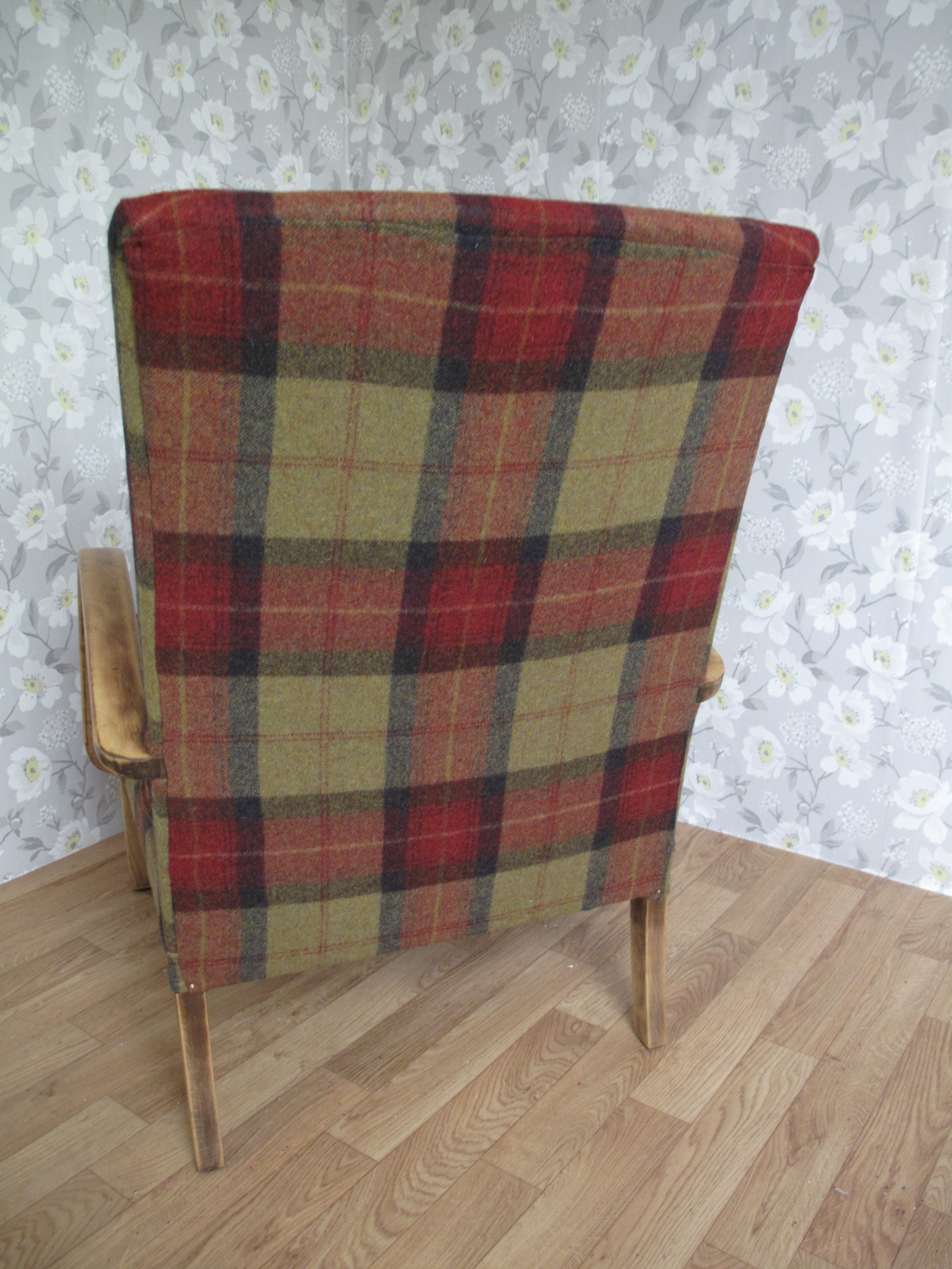 The chair had a new cushion and was covered in Abraham Moon wool.