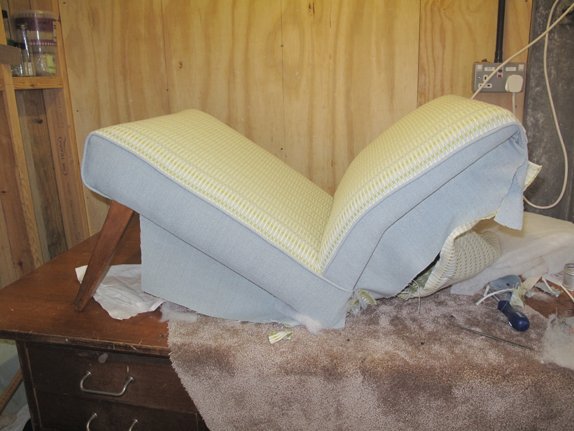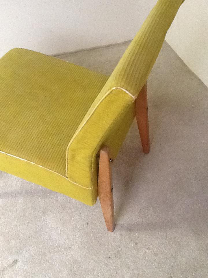 Retro Bedroom Cocktail Chair and Vintage Howard Keith Stool reupholstered in Blendworth Fabric.