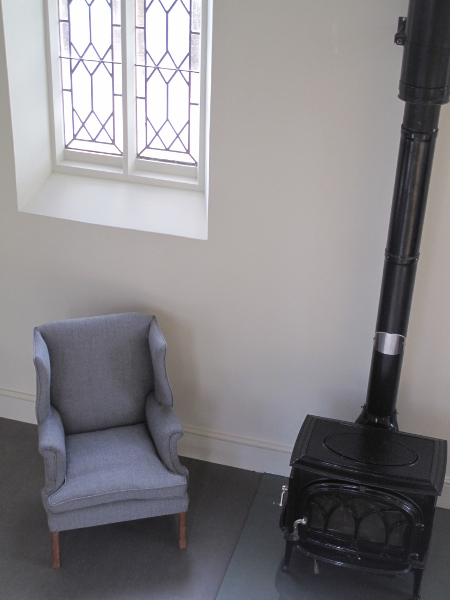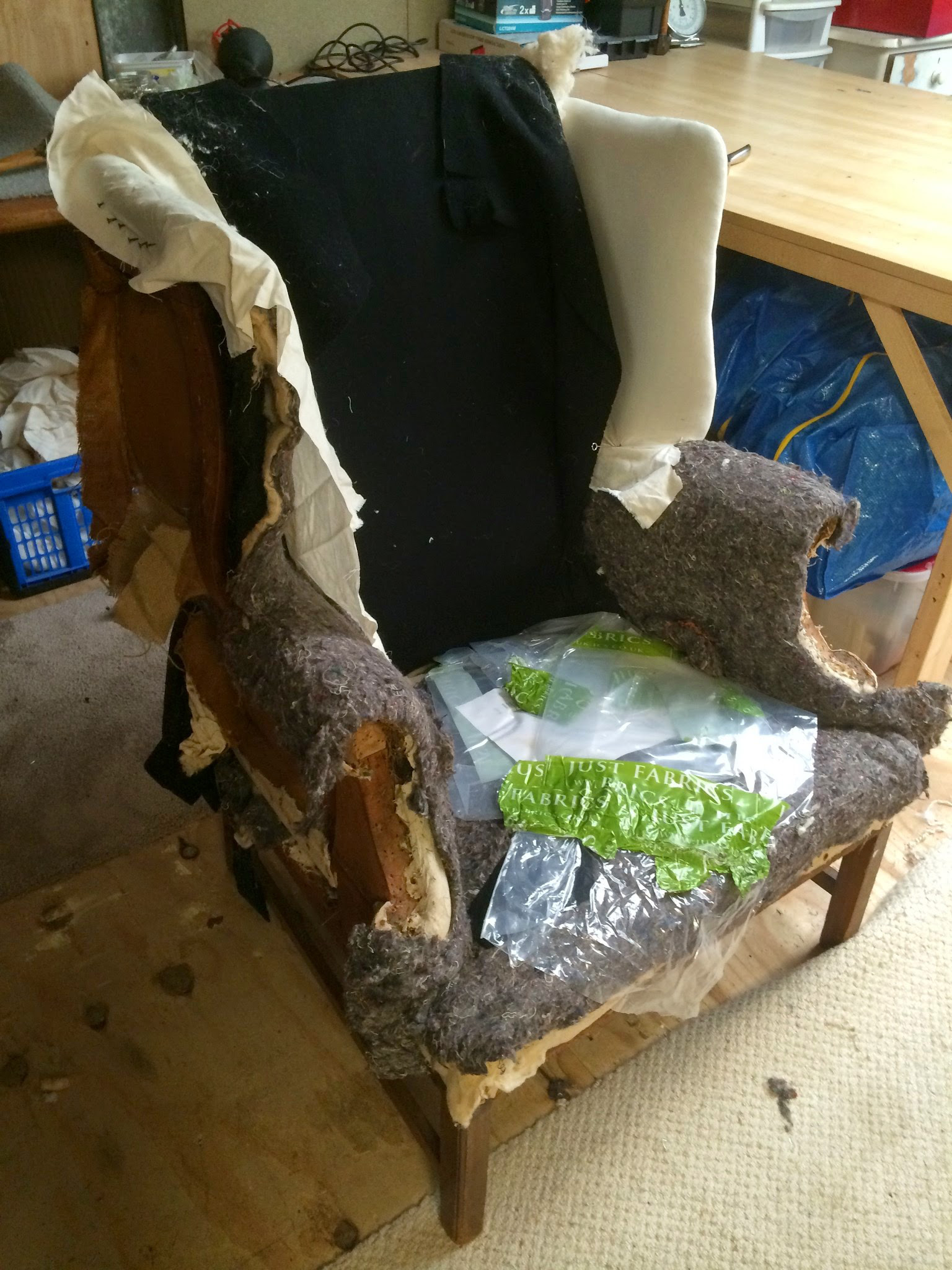 The green velour top fabric was replaced using a Herringbone wool from Bute.