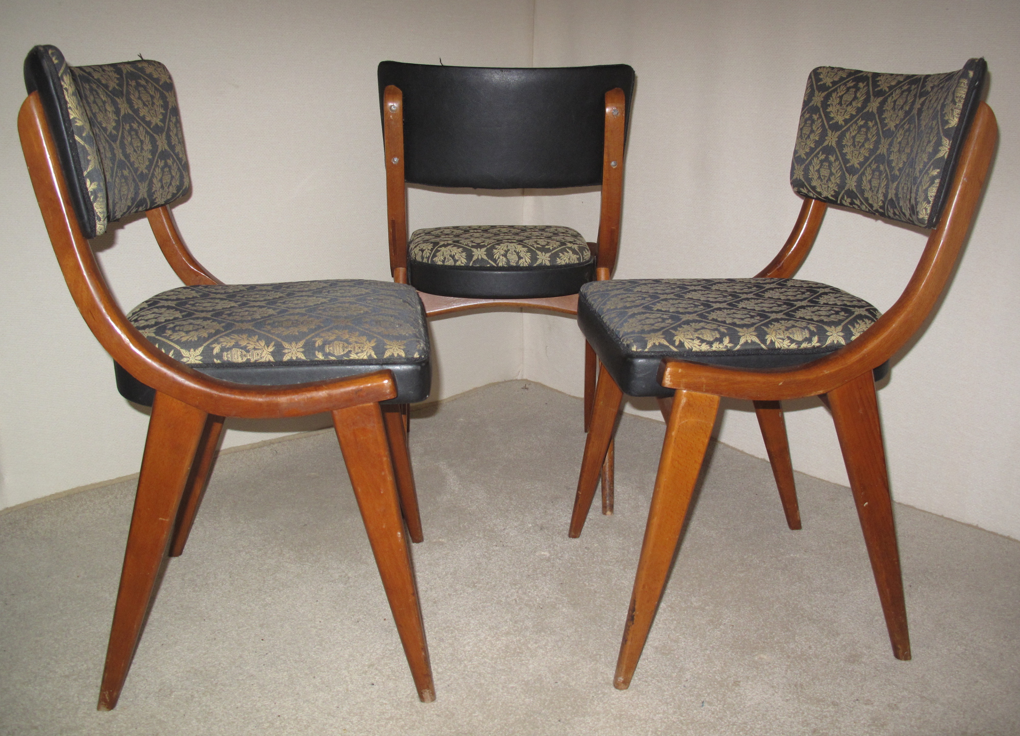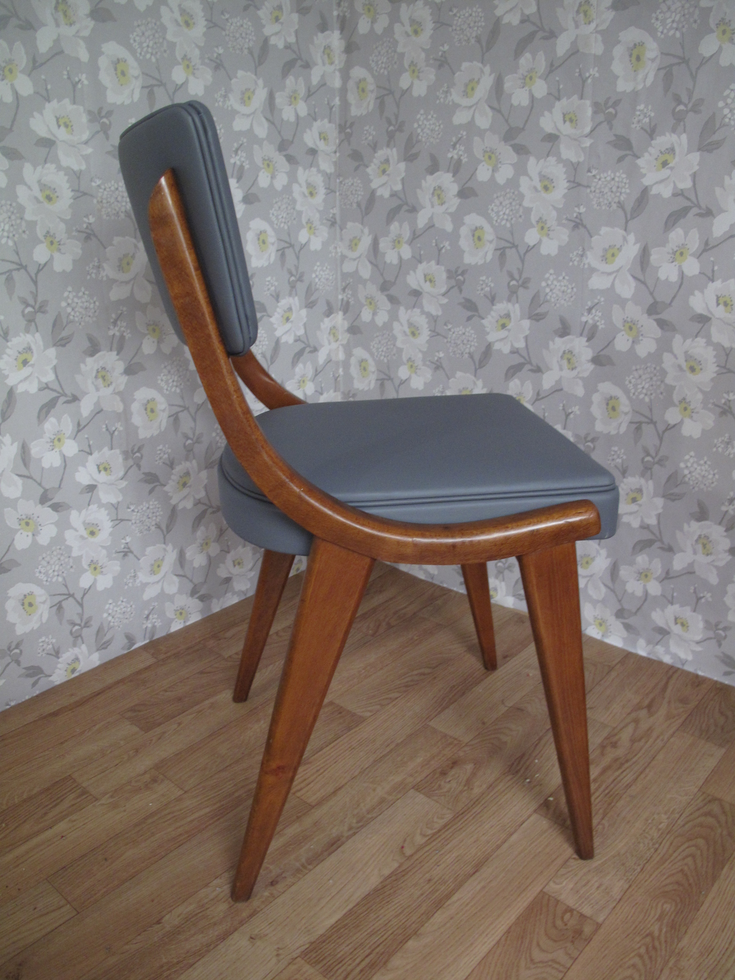 Retro Armless Ben Chairs restored using Grey Vinyl.